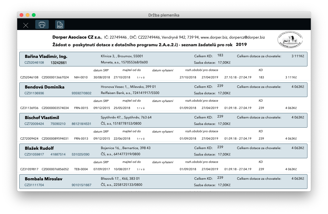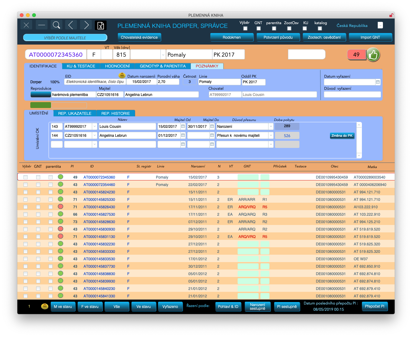 The software complies with the amended Act. 154/2000 Coll. and Regulation (EU) 2016/1012 of the European Parliament and of the Council and the valid Breeding Program.