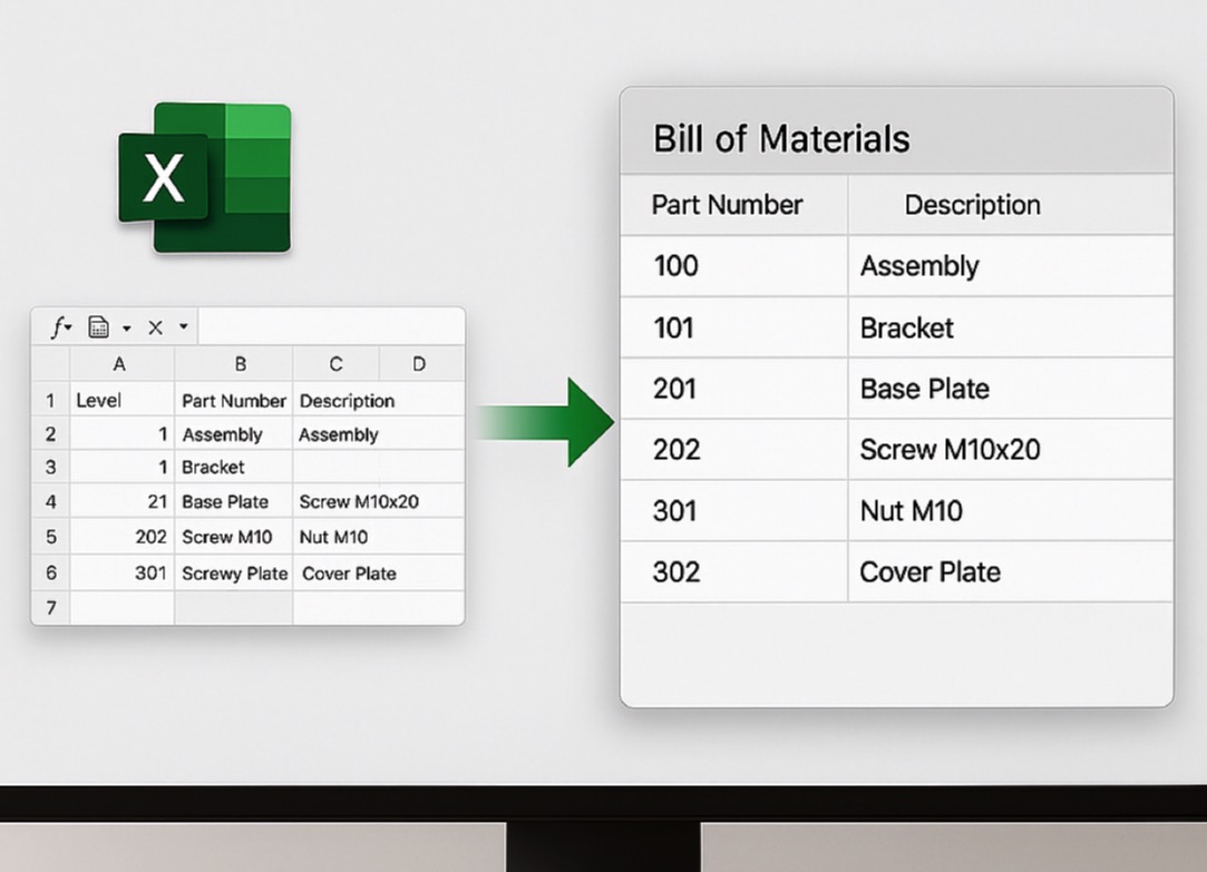 The entire process runs locally within FileMaker, without the need for external tools. The user simply exports the BOM from their CAD software, opens FileMaker, and imports the Excel file with a single step — everything else is handled automatically by the system.
