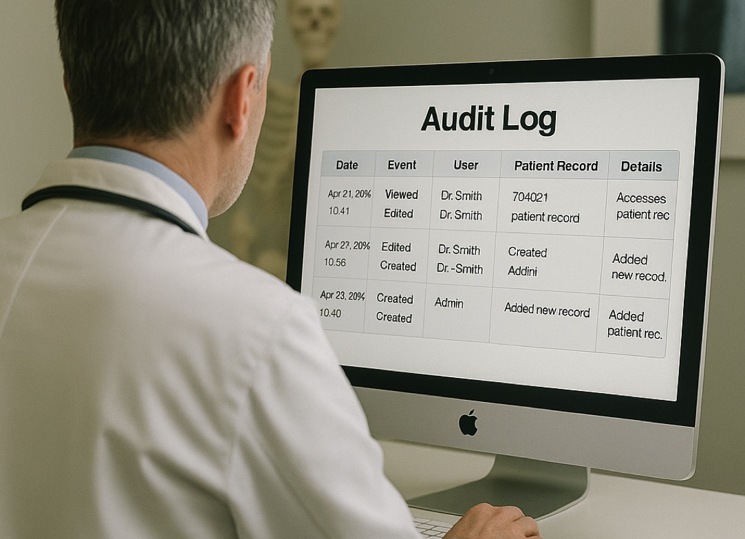 We designed and implemented a logging system directly within the FileMaker environment. The system focuses specifically on patient records and related actions, such as modifications to personal information or rescheduling of examinations. Unlike standard logs that capture only data changes, our system also records mere viewing of a record. In addition, it tracks all edits and deletions.