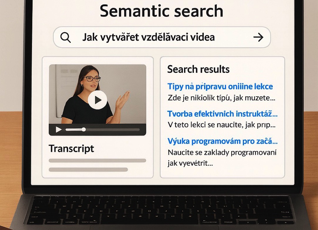 We redesigned the search to work based on meaning rather than wording. Into a vector database, we integrated not only video transcripts but also full website content, which is regularly processed by a custom crawler. That crawler is part of the app and after every page update sends content via REST API and Cron to a Linux-based machine, where it’s ready for AI semantic queries.