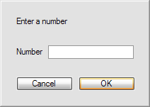 This will create a dialog which contains default buttons Ok and Cancel and input text field with easy regular expression validation for numbers.