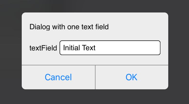 This will create a dialog with default buttons Ok and Cancel and one text field with label "textField" containing "Initial Text".