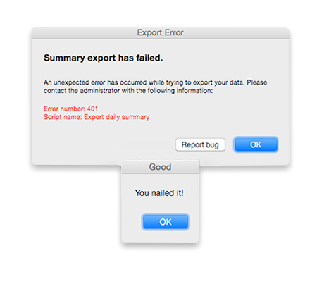 - the whole message will always fit in the dialog, so the user will not miss a cropped piece